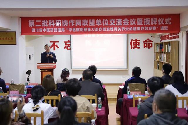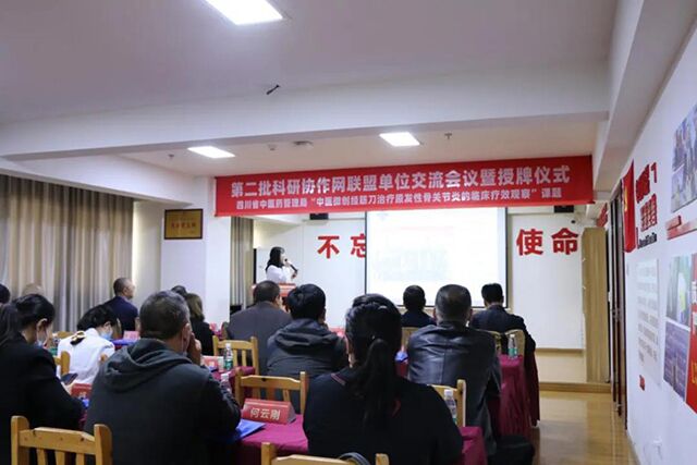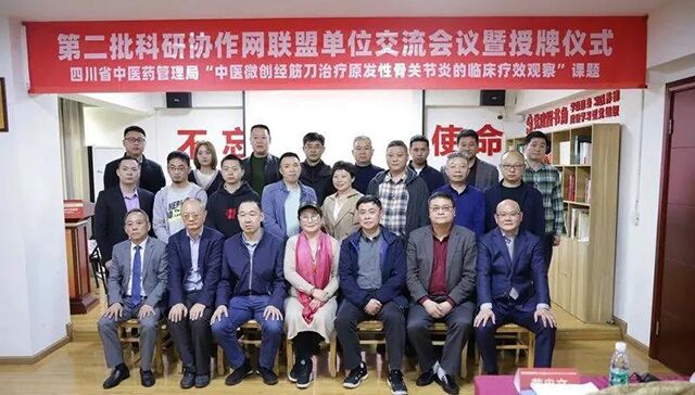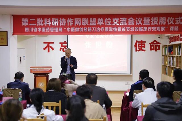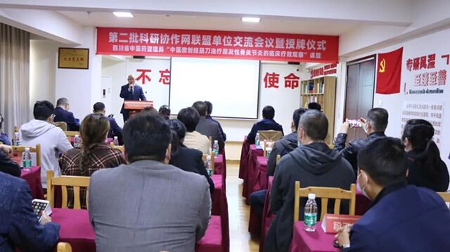 与会专家就成都风湿医院科教部主任郑武燕所作汇报进行了中肯的点评,针对成都风湿医院科教部在科研方面遇到的难题展开热烈的讨论,积极献言献策,四川省第二中医医院张世俊、成都市科技青年联合会苏超、成都市第六人民医院王建提出了宝贵的意见与建议,交流会在充实、热烈的氛围中持续了1个小时。较后,在第二批科研协作网联盟单位授牌仪式上,四川省中医药信息学会会长王笳为成都市第六人民医院 、成都市青羊区人民医院、龙泉驿区中医医院、温江区人民医院进行授牌;原成都市青羊区科技青年联合会秘书长黄忠文为雅安名山区人民医院、邛崃市人民医院、南江县人民医院、通江中医医院、蓬安县中医医院进行授牌;原广州军区总医院陈志煌为金堂县中医医院、新津区人民医院、内江市东兴区中医院、眉山第三人民医院、广汉市中医医院进行授牌,并进行合影留念。
