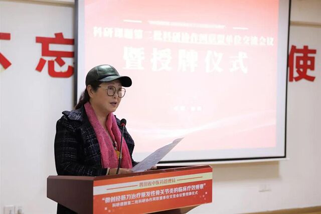随后,成都风湿医院科教部主任郑武燕做科研课题汇报,详细阐述了开展痛风各项科研课题开展的目的与意义,汇报了收集临床科研标本的进展,针对痛风的常见问题防范对策、中医微创可视针刀镜、中医微创经筋刀等技术治疗痛风的临床研究进行详细解说,提出科教部在科研方面遇到的难题,希望与在场专家共同探讨,寻求突破。