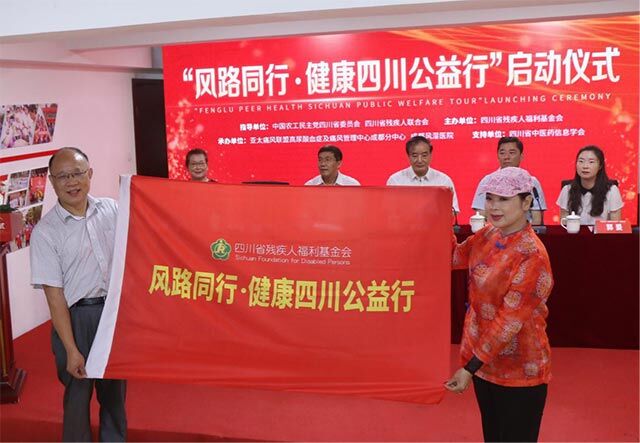 为贯彻落实党中央、国务院《“十三五”脱贫攻坚规划》和卫生医疗改革精神,发展残疾人事业,加强残疾康复和残疾预防,提高风湿免疫疾病的贫困患者生活质量,6月19日上午,在中国农工民主党四川省委员会、四川省残疾人联合会指导下,由四川省残疾人福利基金会主办的“风路同行·健康四川公益行”启动仪式在成都风湿医院举行。