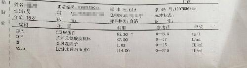 (图:小张治疗前风湿四项检测结果,)