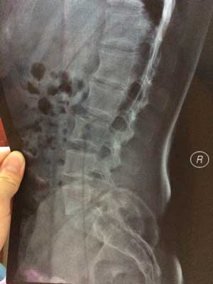 (图:于先生检查时的x光片,蒙兴文主任诊断为强直早中期)