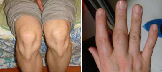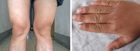 (图:治疗前患者双手肿胀明显,膝关节肿大变形)