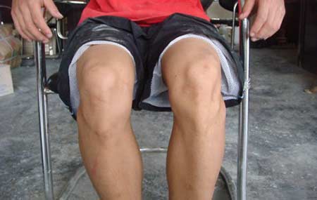 (图:刘先生治疗后,膝盖肿大情况消失,左膝外翻得到矫正)