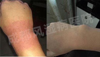 治疗结果:红肿状况及疼痛感基本消失,腕关节活动自如。
