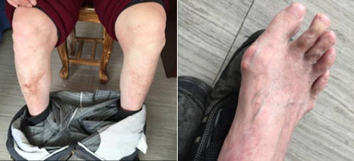 接受第一个疗程治疗后,李先生感觉各个关节疼痛减轻,双膝关节肿胀有所消退,细小痛风溶解,双足关节肤色恢复正常,关节僵硬缓解不少。