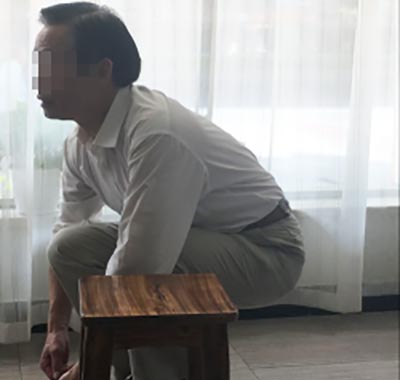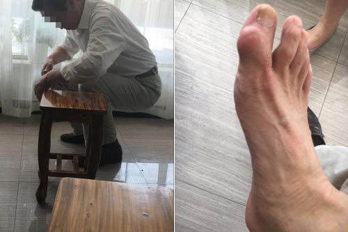 (图:李先生来院时无法下蹲,左脚拇趾有明显痛风石)